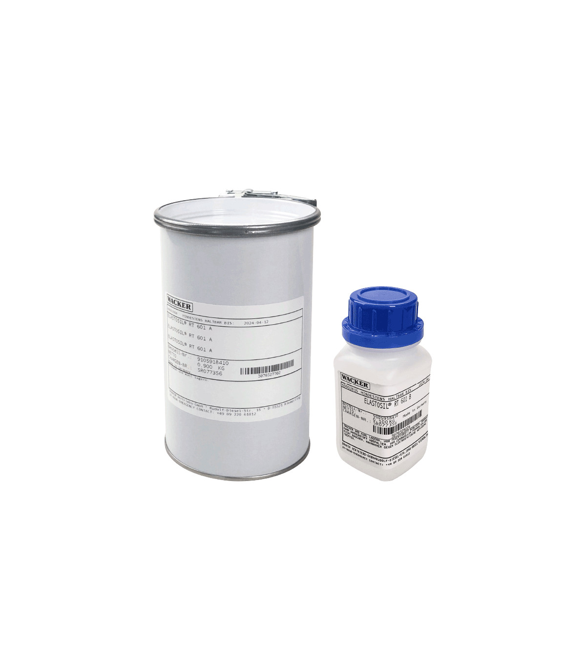 Elastosil RT601 A/B er et hellbart to-komponent, addisjonsvulkaniserende silikon som herder ved romtemperatur. Medium hardhet 45 Shore A. Minimal krymp, og god motstand mot polyuretan og epoksy resin. Helt transparent når ferdigherdet. Lav viskositet. Også tilgjengelig i 30+3kg, bestilles via epost info@dycas.no